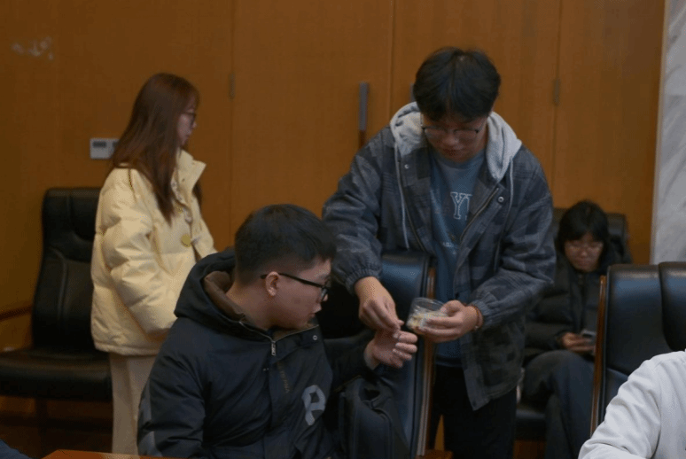随后,交运团委彭颂涵同学为新团员颁发团徽。一枚枚闪耀的团徽在新团员胸前熠熠生辉,这不仅是一份荣誉的象征,更是一份使命的传承。新团员们依次接过这份属于青春的礼赞,脸上洋溢着激动与自豪的神情。