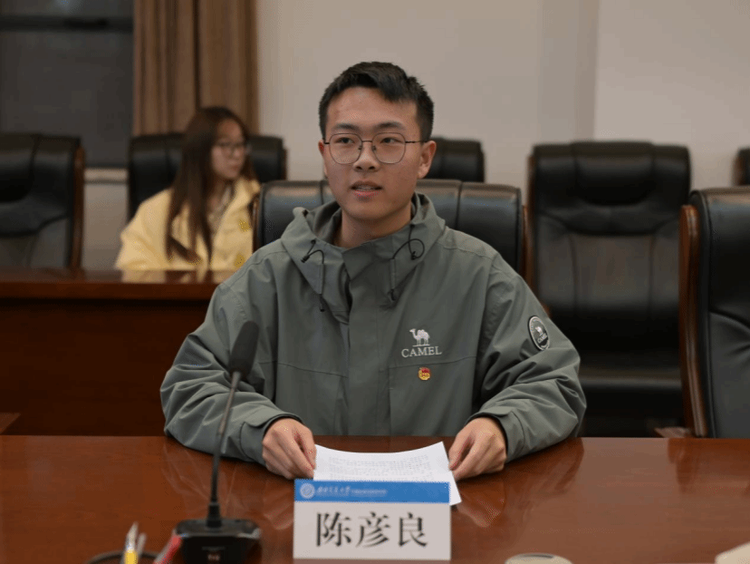 优秀团员代表陈彦良同学结合自身成长经历,与新团员们分享了四点思考:要坚定理想信念,筑牢青春之魂;要勤学善思笃行,筑牢青春之石;要勇于担当奉献,彰显青春之为;要锤炼高尚品德,涵养青春之美。他表示,“加入共青团不是奋斗的终点,而是人生道路上一次庄严的启航”并鼓励新团员们以饱满的热情和务实的作风,在实现中华民族伟大复兴的生动实践中放飞青春梦想。