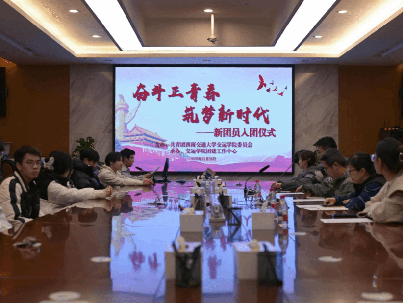为深入贯彻落实习近平总书记对新时代共青团员队伍建设的重要要求,大力锻造有信仰、讲政治、重品行、争先锋、守纪律的新时代团员队伍,交通运输与物流学院团委经过各团支部推优、培养考察和二级团组织审核,最终确定2025年下半年新发展团员名单。在充满荣光的金秋时节,学院于2025年11月26日隆重举行新团员入团仪式,为共青团组织注入新鲜血液。交通运输与物流学院团委书记张素风老师、交通运输与物流学院团委副书记李俊仪老师、交通运输与物流学院辅导员王文靓老师出席仪式,与新老团员共同见证这一重要时刻。