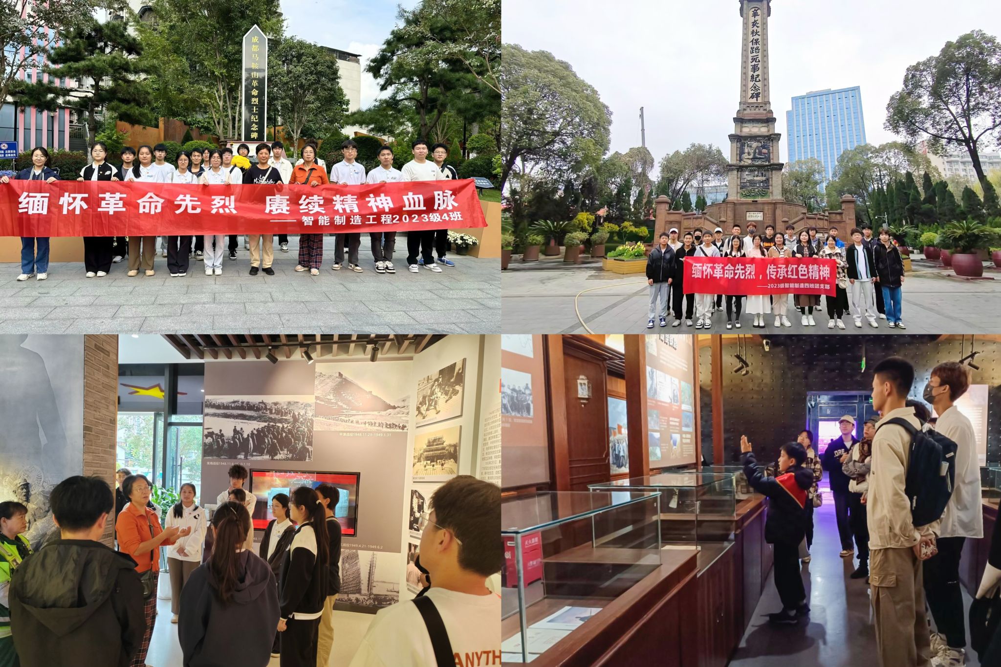 在系统扎实的理论学习基础上,团支部以“行走的思政课”为载体,组织团员青年走进成都马鞍山烈士纪念园、四川保路运动史事陈列馆开展沉浸式研学。本次研学特别邀请马鞍山烈士纪念园设计者石京秀老师担任主讲人,石老师结合多年走访烈士后代的亲身经历,向团员青年们娓娓道来纪念园每一处设计细节背后的深意——这座融合公园城市理念的开放式烈士纪念园,其镌刻英烈事迹的浮雕墙、象征川渝儿女不屈风骨的景观造型,均凝聚着对解放大西南英烈的追思与传承英雄精神的初心。