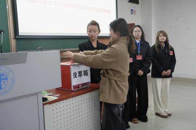 大会第二次全体会议,由学院学生会、研究生会成员赵翔宇、高玥组织选举工作,各代表投票产生人文学院新一届学生委员会委员、学生会主席团成员、研究生会主席团成员。选举结束后,全体代表集体学习了党的二十届四中全会精神,进一步强化了责任担当、凝聚了奋进力量。