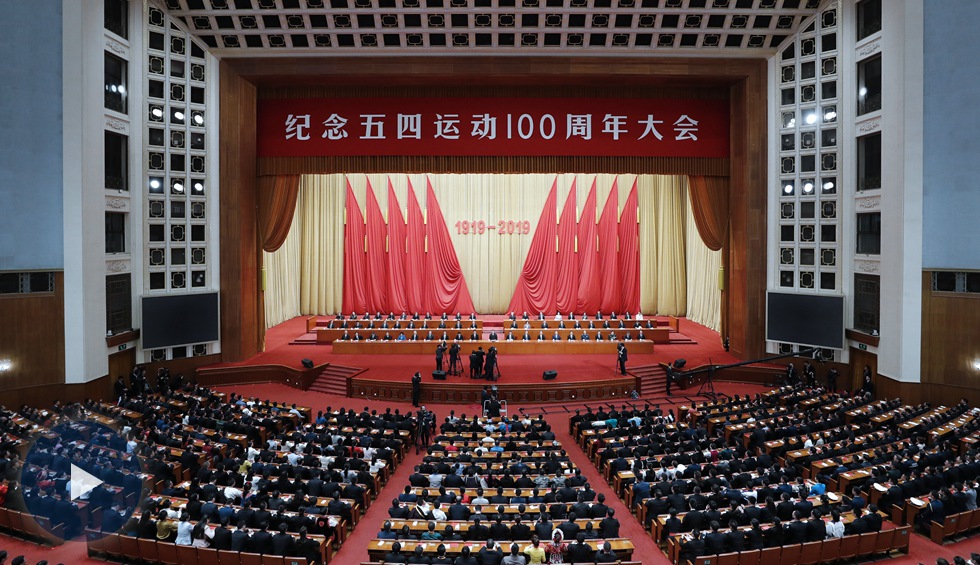 2019年4月30日,纪念五四运动100周年大会在北京人民大会堂隆重举行