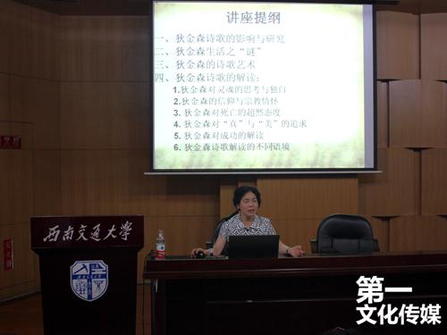 2015年5月28日16:00,由学生工作处主办、外国语学院承办的“妙语茶香,走进欧美文学系列讲座”在犀浦校区图书馆二号报告厅举行。本次讲座主讲人为外国语学院对外汉语兼英语教授史迹,讲座主题为:解读狄金森诗歌——灵魂的思考与独白。