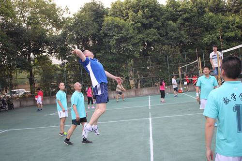 在陈歌迈院长的指挥下,每位比赛场上的数学学院的老师们都配合得分外合拍,相互鼓励,奋力拼搏,发挥出色,逐渐获得了主动权。赛场上分数激烈的交替上升,最终数学学院更胜一筹,以25:22取得了第一局的胜利。第二局一开场,数学学院教师们依旧沉着稳重,传球、跳跃、扣球,每一个动作都尽力做到最到位。最后,数学学院教师们以25:17胜过生命学院教职工,以2:0的大比分取得最终胜利。