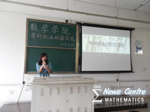 此次“考研就业经验交流会”邀请到2011级考研和就业的优秀学生代表做考研、就业的经验介绍,出席本次交流会的还有数学学院团委书记徐海晶老师。