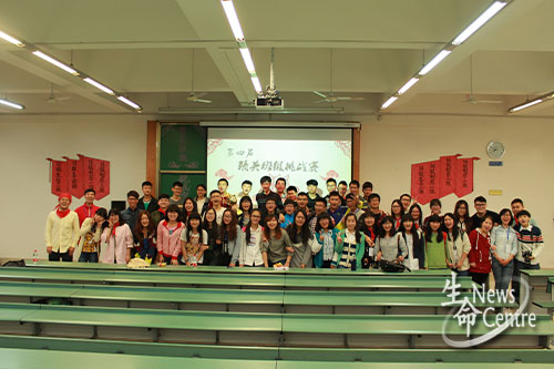 4月19日晚7:30,精英班级挑战赛在X4359举行。出席本次比赛的嘉宾有:生命学院团委副书记、学生会指导老师魏源成,11级辅导员张敬文老师,生命学院学生会主席郑涵丰、副主席张木及生命学院青协副会长李燕娜。参赛班级为12级生信二班、13级生工四班、13级制药一班、13级制药三班、14级生工二班、14级制药一班、14级制药二班和14级制药三班。本次比赛由高宇生同学主持。