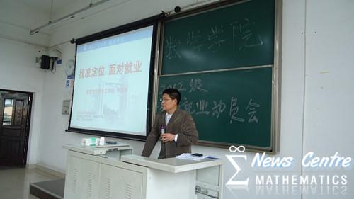 在2012级的同学们即将面临他们本科生涯中最重要的选择之际,4月10日下午,数学学院于14时30分在X2337举办了考研及就业动员大会以帮助同学们明确毕业后的发展方向。本次大会由2012级辅导员徐海晶老师主持,由数学学院党委副书记李志辉副教授主讲。