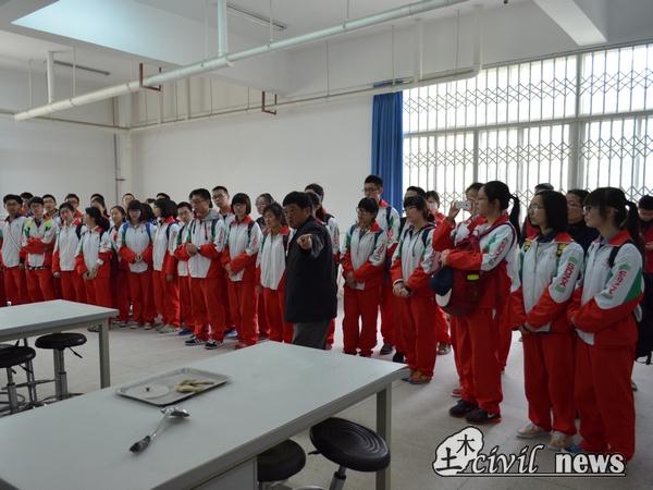欢迎仪式圆满结束后,树德一行被分成A、B、C三大组,由土木工程学院大学生志愿者带领分别参观西南交大风洞实验室、土木学院流体力学实验室、虚拟选线3D仿真技术实验室、交通运输实验室及西南交大新校区典型人文景观。记者跟随A组的脚步来到西南交大风洞实验室。大家在试验管理员的带领和讲解下参观了土木学院教学示范中心的建筑材料—养护室、道路材料—性能测试室、土力学—物性室等实验室。过后树德中学的学生们四人为一组参加了“隧道模型制作及振动测试实验竞赛”和“桩基础制作及承载测试实验竞赛”。虽然同学们没有太多的专业知识的储备,但是他们凭着自己平时的生活经验积极地讨论起方案。经过一番激烈的讨论,同学们争分夺秒,开始完成模型。竞赛成绩将根据各组的现场表现情况评定,并于下午举行的闭幕式揭晓。