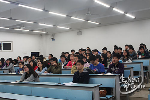 在简短的点名环节后,会议正式开始。首先,由张敬文老师上台讲话。张敬文老师此次讲话的主要目的是告知同学们学习的重要性。张老师从当年的大学舍友、自己的学生到自己的亲身经历来告诉同学们“学习在大学是非常重要的”这一思想,并且告诉同学们优异的成绩与团结、努力等优秀品质是密不可分的。此外,张老师还重点强调本学期的请假制度及对学生们的6点基本要求,并希望同学们能够抓住机会,努力学习。