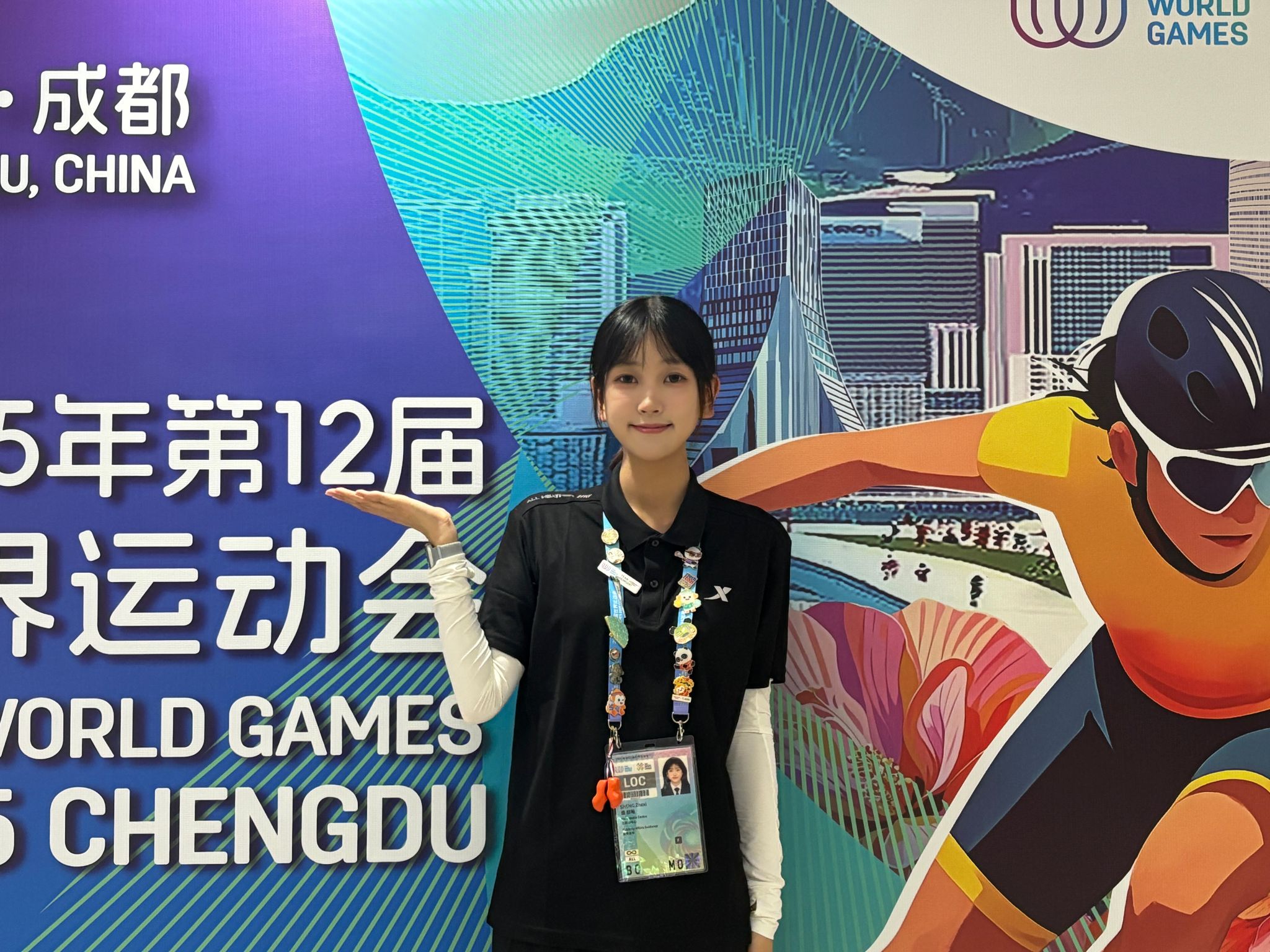 本次作为世运会NOC随员志愿者,我的主要职责包括为来访外宾和官员提供语言支持,协助他们及运动员顺利入住世运村,并陪同他们熟悉场馆、观看比赛,以及处理其他部分日常事务。