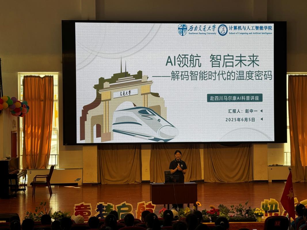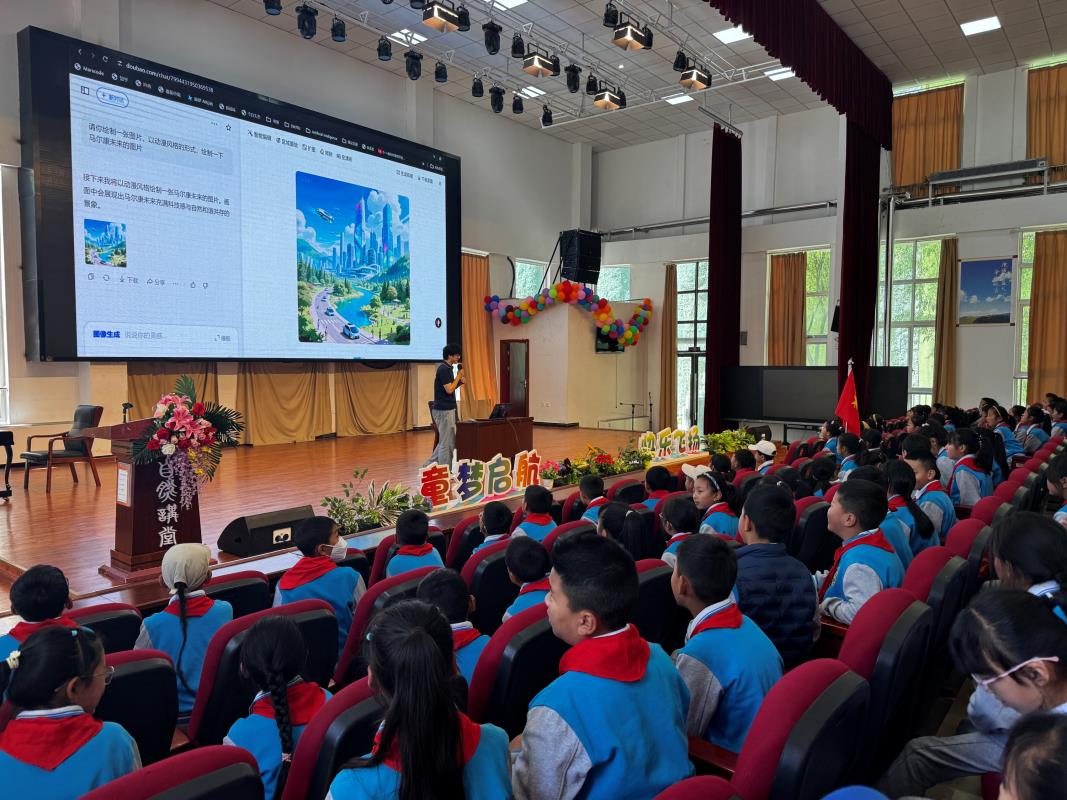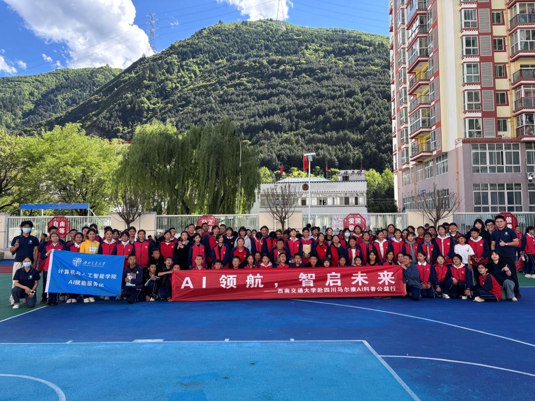 在中国青少年发展基金会的大力支持下,计算机学院团委“AI赋能”服务团于2025年6月5日走进四川马尔康,在马尔康第四小学和马尔康第二中学分别开展了以“AI领航,智启未来”为主题的“中国茅台·国之栋梁”希望学子公益行活动。此次活动旨在通过一系列丰富多彩的科普讲座、科创展示和互动环节,为西部地区青少年学子打开人工智能世界的大门,拓宽他们的科技视野,激发他们对科技的探索热情。
