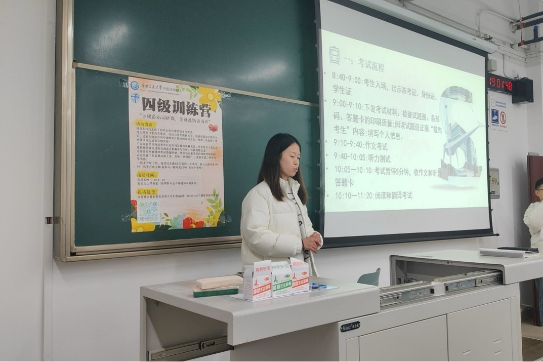 习近平总书记指出:“广大青年要肩负历史使命,坚定前进信心,立大志、明大德、成大才、担大任,努力成为堪当民族复兴重任的时代新人,让青春在为祖国、为民族、为人民、为人类的不懈奋斗中绽放绚丽之花。”在校党委学生工作部的大力支持下,外国语学院青年志愿者协会秉持“助力学子成长,服务校园学风建设”的理念,创办了“云端启航词林徜,实境履践语海洋”英语四级提升营,旨在帮助同学们攻克英语四级难关,同时营造良好的学习氛围。