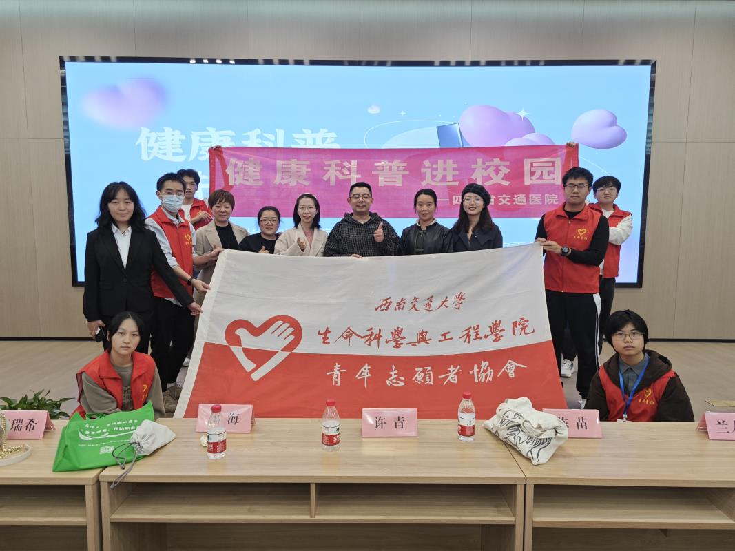 随着生活水平的提高,人们对健康的关注度日益增加。但许多大学生对健康知识仍存在不少盲点和误区。为确保活动达到预期效果,在活动筹备阶段,生命青协志愿者们于校园人流量较密集的二食堂门口,以摆摊分发小礼品形式对讲座进行造势宣传,同时向同学们介绍活动的主要内容。活动伊始,志愿者们早早抵达会场进行布置及设备检查。与此同时,志愿者们积极维持现场秩序,在会场门口及会场内部引导同学们有序就坐。讲座结束后,青协志愿者们同四川省交通医院的老师们合照留念,并就讲座相关事情进行亲切交流。