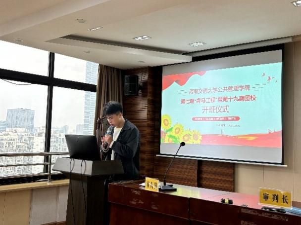 征途漫漫从头越,奋楫扬帆向未来。秦彬杰同学首先对“青马工程”的内涵进行了细致解读。“青马工程”始终与党和国家的根本任务紧密相连,践行“为党育人、为国育才”的政治使命,引导广大青年坚定理想信念,提升综合素质。公共管理学院团委书记莫太林老师为本次仪式致开幕词,莫太林老师向本期学员表示了热烈的祝贺,简要介绍了“青马工程”相关课程安排和学习要求,激励大家努力成为信仰坚定、能力突出、素质优良、作风过硬的时代新人。