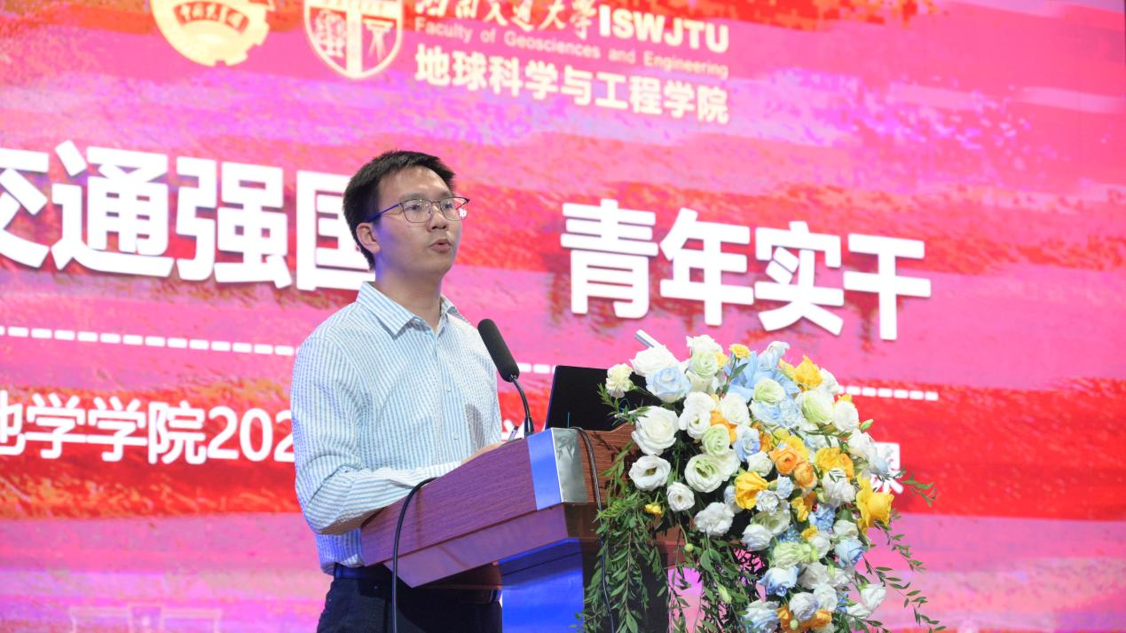 在宣讲会开始前,杨都强老师以“交通强国·青年实干”为主题,诠释了青春价值与时代使命,通过讲述川藏铁路建设博士服务团2024年本硕博暑期社会实践活动、广大地学学子“三下乡”社会实践等内容鼓励同学们积极参与社会实践,从小做起、从身边做起、从加入校内团学组织开始提升综合素质、增长实干本领、激扬奋斗意志。