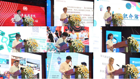 (图片依次为:党建事务中心主任伍乐成、团建中心副主任张津瑞、综合素质中心主任王鹏飞、青年志愿者协会会长李心悦、地新传媒副主任张博涵、学生园区与事务中心事务中心部长卢晶莹、就业指导中心主任郑思益、班级联合会主任邢赫澄、学习与科创中心副主任杨童)