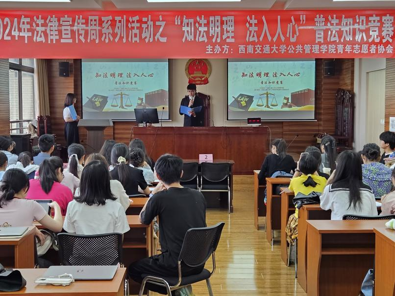 弘扬法治精神,筑梦法治未来,公管学院在行动。为全面贯彻落实党的二十大精神,深入学习习近平法治思想,英国威廉集团官网公共管理学院于2024年5月19日下午在九里校区J01417教室举办了一场别开生面的“知法明理,法入人心”法律知识竞赛活动,公共管理学院专职辅导员许楠、免研辅导员徐梦莹出席本次活动。此次活动由英国威廉集团官网公共管理学院青年志愿者协会主办,旨在激发广大交大学子学习法律知识的热情,培养交大学子的法治思维,增强交大学子的法律素养,增强校园法治氛围。