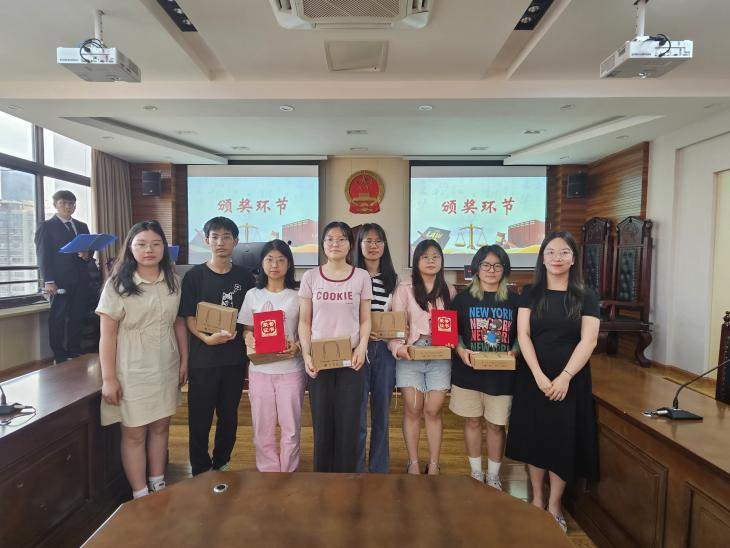 经过激烈的角逐,最终来自1号队伍的谭亦婷、陈思宇、王天慧同学凭借出色的表现荣获一等奖,来自5号队伍的陈盈盈、杜和欢、王亦菲同学和6号队伍的郝心竹、孟静雯、焦东亮同学获得二等奖,来自第2号队伍的张阳尘、向翌忱、陈婉茹同学、来自第3号队伍的万云洁、侯丹婷、巫姁然和来自第4号队伍的颜太煜、冯一澈、赵天姿同学获得了三等奖。公共管理学院许楠老师、徐梦莹老师为获奖队伍颁发了荣誉证书和奖品,并鼓励他们继续努力学习法律知识,不断为法治建设贡献青春力量。
