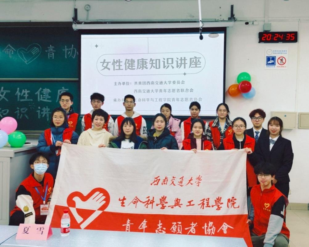 12月7日,生命科学与工程学院青年志愿者协会联合四川省交通医院在犀浦校区成功举办了“呵护健康,益起美丽”女性健康知识讲座。本次讲座旨在让大学生更深入地了解女性健康知识,提高对女性健康的重视程度。活动到场的嘉宾有四川省交通医院主管药师侯丽芳老师、主管护师温晓庆老师以及妇产科住院总夏雪老师。
