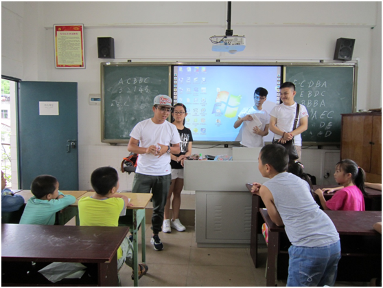 但在随后的教学过程中,队员们发现了意想不到的困难:由于正值假期,学校召集来的同学大多是离家较近的同学,年级参差不齐,一年级和八年级的同学坐在一间教室里听课,给教学带来了诸多的困难与不便,学生上课的积极性也不高。队员们经过分析与研究,在下午的教学开始前对学生按照年级进行了分班,同时改变授课内容。这样一来,教学效果与教学秩序都获得了良好的改善,支教活动有条不紊的进行着。