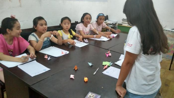 在之前的实践过程中,我们给同学们发了文具,用色彩斑斓的手工纸折纸鹤等,我们还号召同学们将自己的梦想写入了我们所折的最后一个纸鹤中,希望同学们在时间的洪流中,多年后还能依旧保持着对最初梦想追寻的那份期待,那份热情,最后收获一份来自过去的感动。