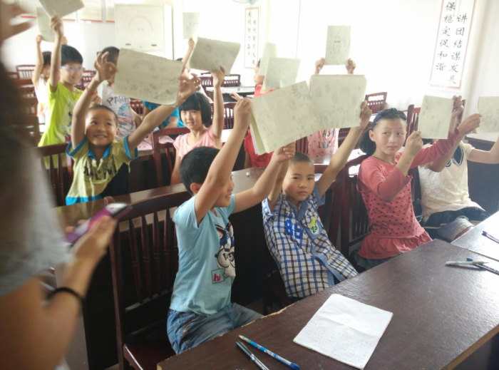 之后几天我们的安排逐渐常规:早上辅导他们写暑假作业,然后上课讲音标,或者教他们唱歌。下午组织孩子们看书,讲一些他们感兴趣的知识。然后带他们做做游戏,既有意思又可以锻炼他们的反应速度。