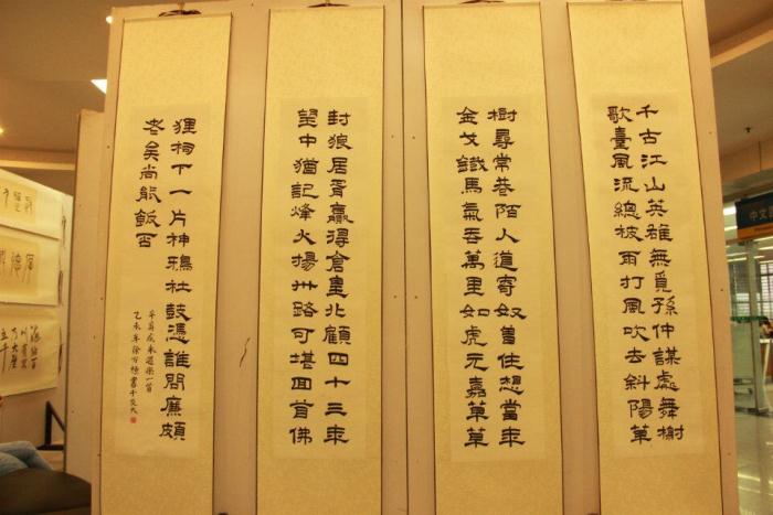 无论是隶书《永遇乐·京口北固亭怀古》,还是瘦金体《葬花吟》,亦或是草书《脚气帖》,本次书画展囊括字体较多,真行草隶篆魏碑可谓应有尽有。无论是竹影婆娑,还是静物雅趣,或是寄情山水,本次展出的国画都得到了交大师生的喜爱。
