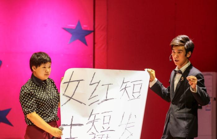 其中谢青林的心灵魔术也是本次晚会的一大看点,由于要请一名观众上台,场下的同学则一起邀请了薛婧老师作为观众作为这次表演的观众,对于这种突如其来的变数,谢青林似乎早已预料这一现象,将薛婧老师的着装犹如预言的猜了出来。