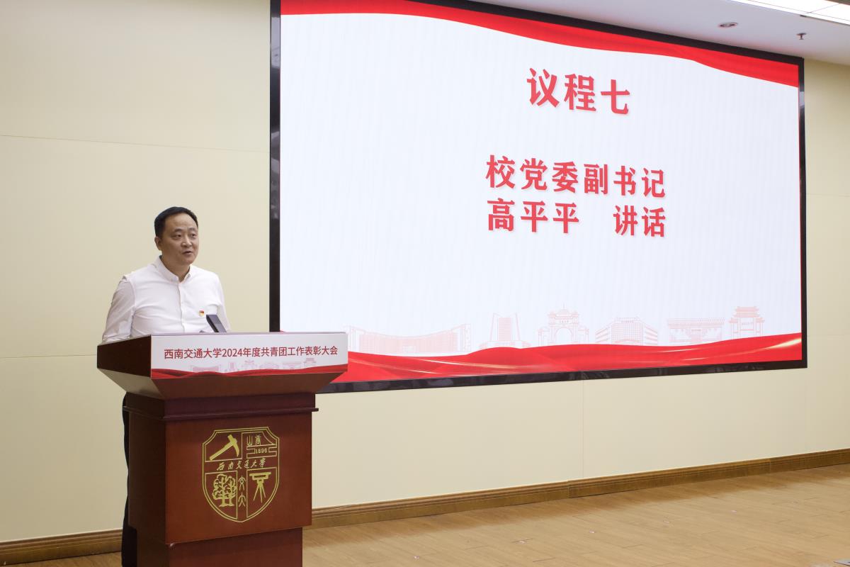 会上,校党委副书记高平平作了讲话。他代表学校向奋战在青年工作战线的广大师生表示慰问,向受到表彰的集体和个人表示祝贺,向全校青年致以节日祝福。他强调,学校党委高度重视共青团建设,青年始终是学校事业发展的中坚力量。近年来,学校共青团聚焦主责主业,围绕中心,服务大局,展现青春作为,校团委荣获“全国五四红旗团委”,共青团和青年工作取得显著成效。并对青年学子、青年教师以及各级团组织提出了几点要求和希望:青年学子要胸怀理想、勇担重任,坚定不移听党话、跟党走,在实现中华民族伟大复兴的时代洪流中踔厉奋发、勇毅前行;青年教师要坚持为党育人、为国育才,紧紧围绕立德树人根本任务,在培养社会主义建设者和接班人的青春阵地上传道授业、启智润心;各级团组织要坚持党有号召、团有行动,切实担当党赋予共青团的使命任务,在新时代新征程上团结凝聚青年与党同心、青春建功。