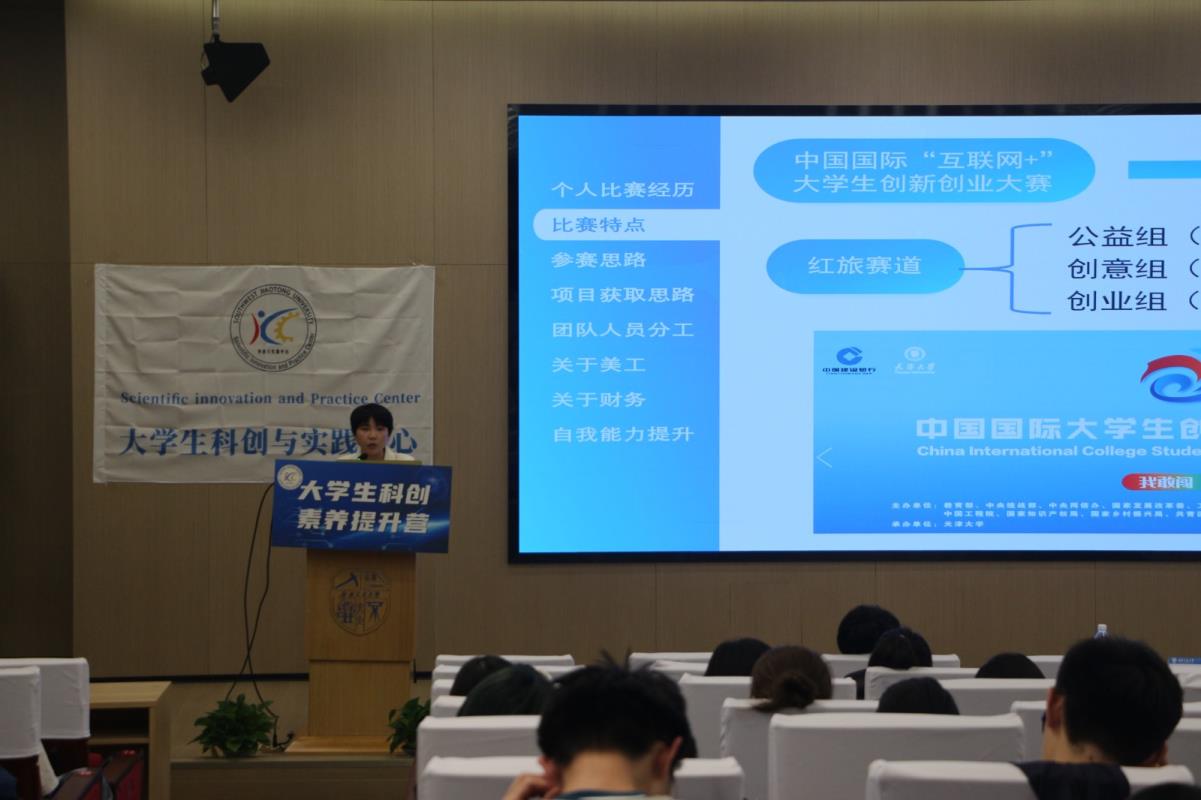 在会上,大学生科创与实践中心学生骨干王筠然对现场的同学们进行了“挑战杯”大学生创业计划竞赛赛事培训,他分别从“挑战杯”大学生创业计划竞赛赛事概况、赛事章程、常见问题等方面,为同学们备赛、参赛理清思路。第十三届“挑战杯”四川省大学生创业计划竞赛省级银奖项目团队负责人高彤彤分享了她参加科创竞赛的经验和收获。她带领同学们深入剖析了“挑战杯”的全过程,从比赛初期的团队分工、项目命名,比赛中期收集资料、寻求帮助、完善项目,比赛末期准备答辩、复盘流程三个阶段帮助同学们点亮“挑战筑梦”之路。