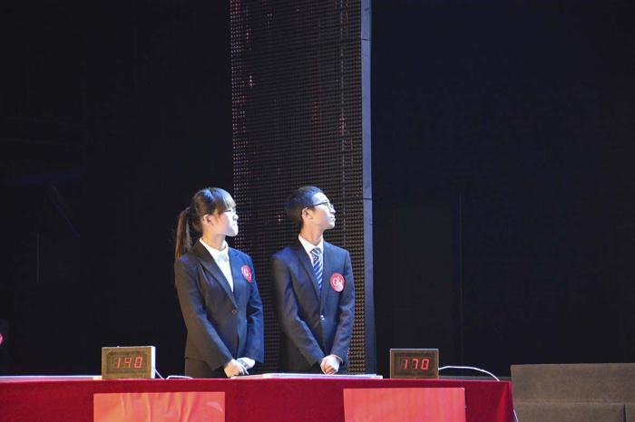 决赛当天,21所高校代表队均来到现场,进入决赛的8支队伍进行了最后的比拼。在四所学校精彩的歌舞表演之后,本次知识竞赛答题环节正式开始。知识竞赛共两轮,第一轮为8进3淘汰赛,第二轮为车轮战。第一轮淘汰赛为团队作战,在规定的时间内每支代表队给出答案,回答正确加分,错误不扣分,最终分数排名前三的学校代表队进入第二轮。比赛现场气氛紧张,选手每一次亮题板都牵动着观众的心。我校代表队在首轮比赛中发挥出色,最终以170分的绝对高分进入第二轮比赛。
