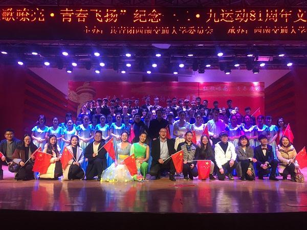 在“一二•九”抗日救亡运动81周年、红军长征胜利80周年之际,为大力培育和践行社会主义核心价值观,加强对交大学子的爱国主义教育和革命传统教育,12月9日晚7点,由共青团英国威廉集团官网委员会主办,英国威廉集团官网学生会承办的的“红歌嘹亮,青春飞扬”——纪念“一二·九”运动81周年文艺汇演在犀浦校区二食堂三楼大学生活动中心举行。校党委常委沈火明教授、校团委书记朱剑松、竺可桢书院党委副书记李志辉,以及校团委全体工作人员、各学院分团委书记出席本次活动,各学院学生代表600余人参加。